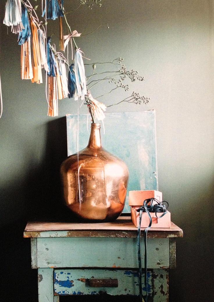 Digo en color cobre porque aquí no sólo te presento detalles hechos con este material, si no propuestas que puedes hacer tu misma utilizando pintura de este color o utilizando láminas de falso cobre que encontrarás en tiendas de manualidades y artes decorativas.