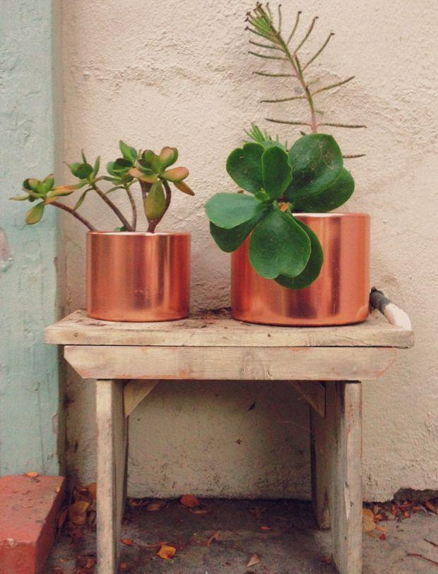 Podemos dar un plus a nuestra decoración utilizando antiguos cacharros de cobre muy comunes en otras épocas reinventando su uso como maceteros por ejemplo.