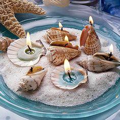 Existen en el mercado infinidad de velas en formas , colores ,de olor, flotantes.... hasta puedes hacerlas tu mism@.