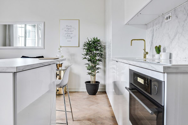Sin apenas espacio para nada y mucho ingenio, sacar el hueco necesario para tener una isla en la cocina tiene muchísimo mérito. Además, la decoración no es menos interesante, puesto que permite tener un dormitorio casi casi de hotel 5 estrellas, con cabecero de capitoné, ropa de cama de calidad y múltiples cojines.