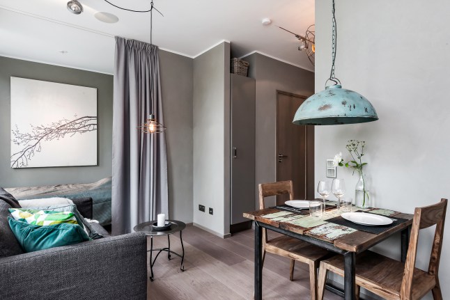 Me encanta el blanco, pero he de reconocer que adoro la gama de colores que han utilizado para decorarlo, porque, aunque es relativamente pequeño, el color gris elegido le da mucho carácter a la estancia, y además los complementos de estilo industrial le quedan genial.