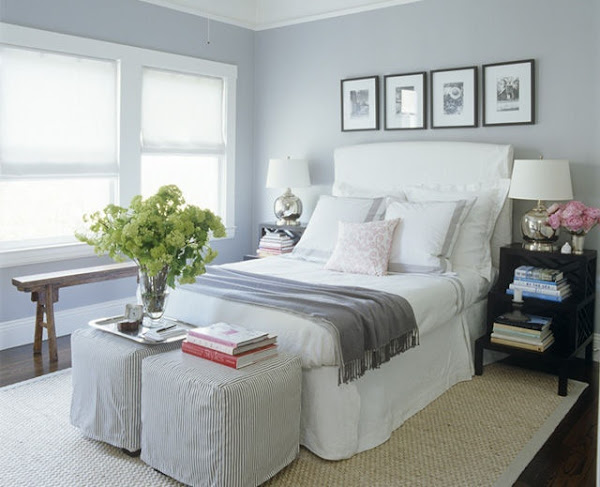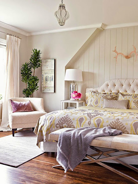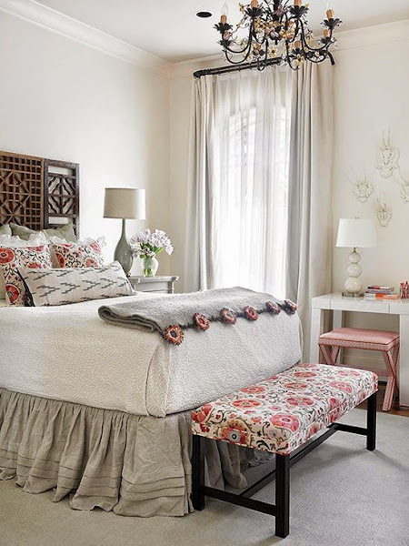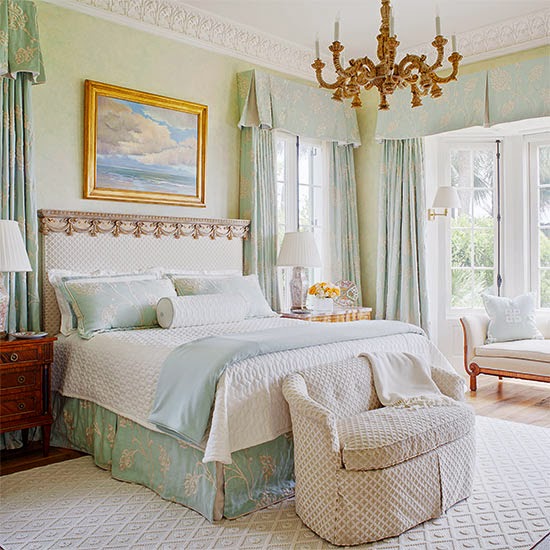 Habitaciones de matrimonio decoradas con papel pintado y tela. Una opción práctica para revestir paredes y que aporta un toque romántico a la habitación. Imagens: House to Home