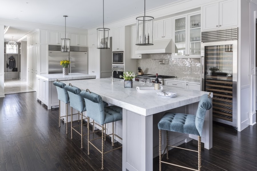 Se pueden combinar con islas en maderas nobles o con colores más contrastantes y utilizar superficies de trabajo tanto de materiales naturales -granito o mármol- como artificiales -cuarzo, porcelánico o superfices sólidas-.