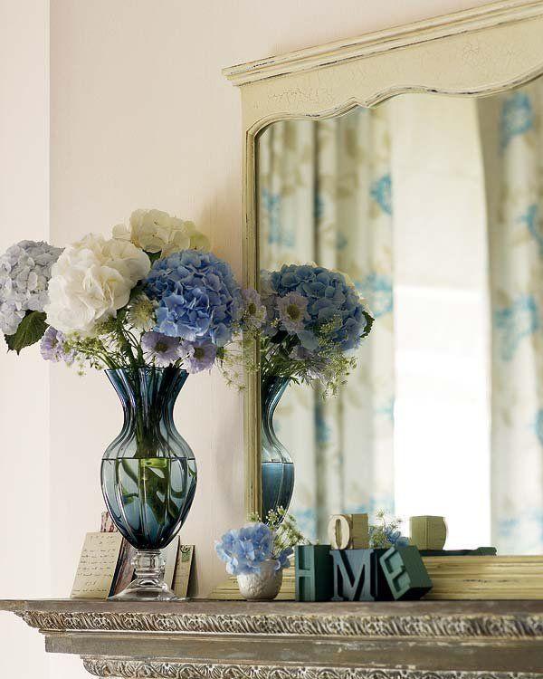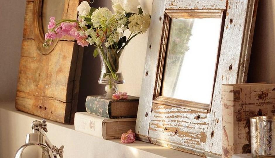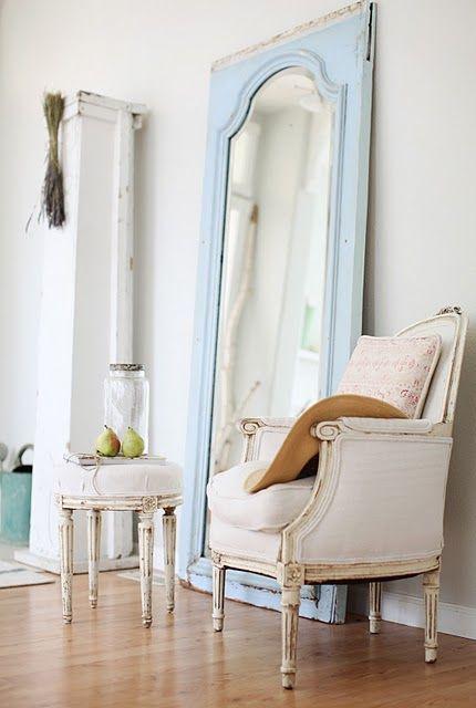 Puedes ponerlos solos como punto focal de una habitación como en este salón donde se ha utilizado un antiguo espejo de un aparador.