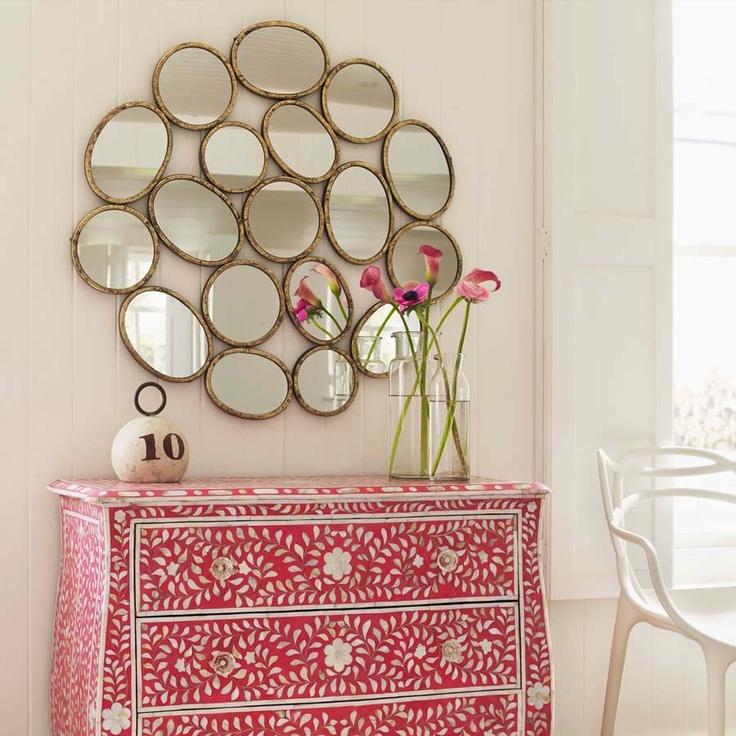 O los puedes poner como conjuntos.Tanto combinándolos con otros espejos del mismo estilo, época ,color o en contraste Con otros elementos decorativos como cuadros, placas, láminas... Creando una pared muy decorativa aunque hay que hacerlo con cuidado para que no llegue a cansar y que parezca una exposición de mercadillo.Te aconsejo que primero los dispongas por ejemplo en el suelo para ver que efecto hace tu composición e ir cambiando su ubicación hasta que encuentres la más armónica antes de hacer un agujero en la pared.Cuando ya lo tengas decidido pus nada manos a la obra!!!