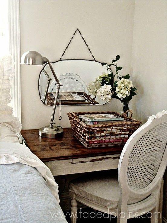 En un dormitorio a modo de mesita de noche tocador o para crear un rincón de trabajo y/o lectura.