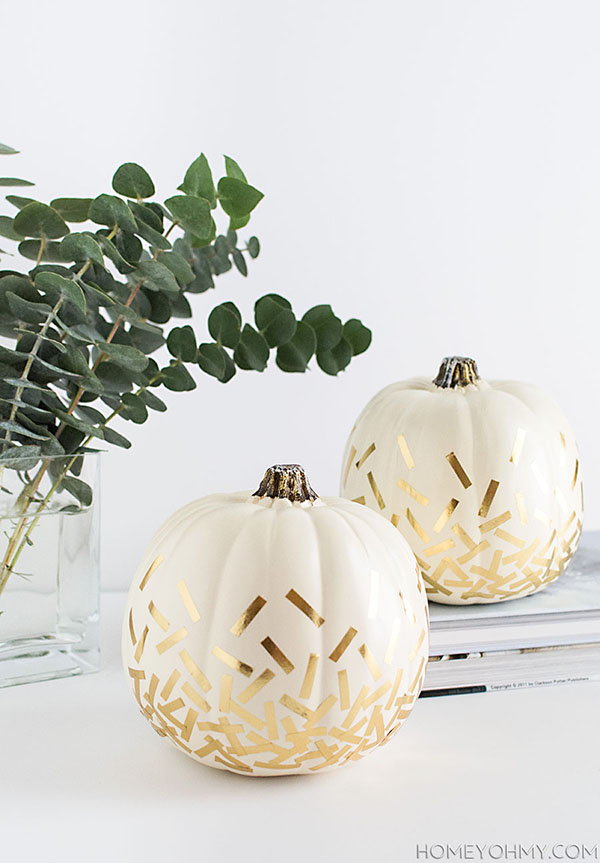 Las del post de hoy son 3 IDEAS para hace con chalk paint combinado con cinta adhesiva, rotulador permanente y confeti, los DIY sacados del blog Homeyohmy son muy fáciles de hacer y el resultado se aparta de los convencionalismos del naranja clásico.