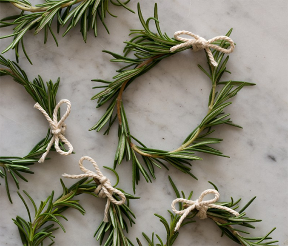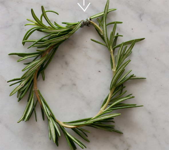 De todas las ideas de hoy, ésta es sin duda la más fácil de hacer. Para hacerlo sólo tienes que coger la rama de pino o abeto, unir los extremos con un alambre fino o hilo, y listo. ¡Mesero terminado!