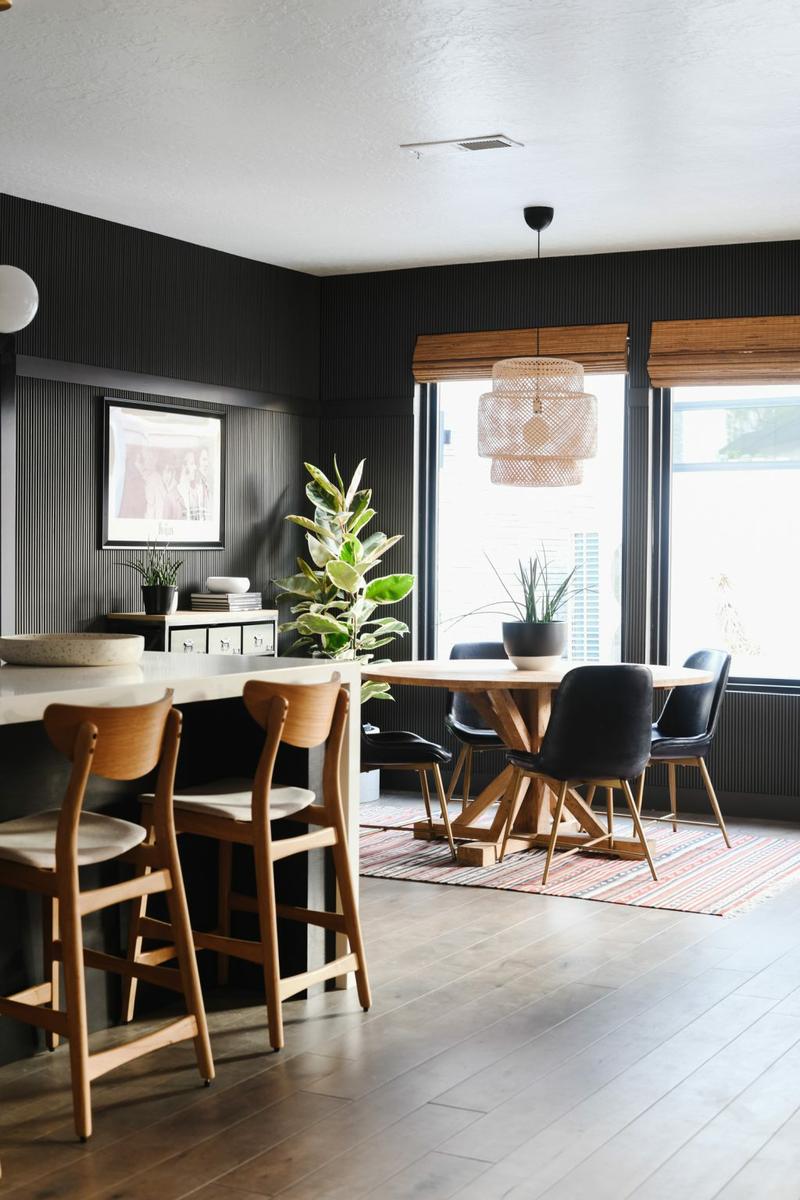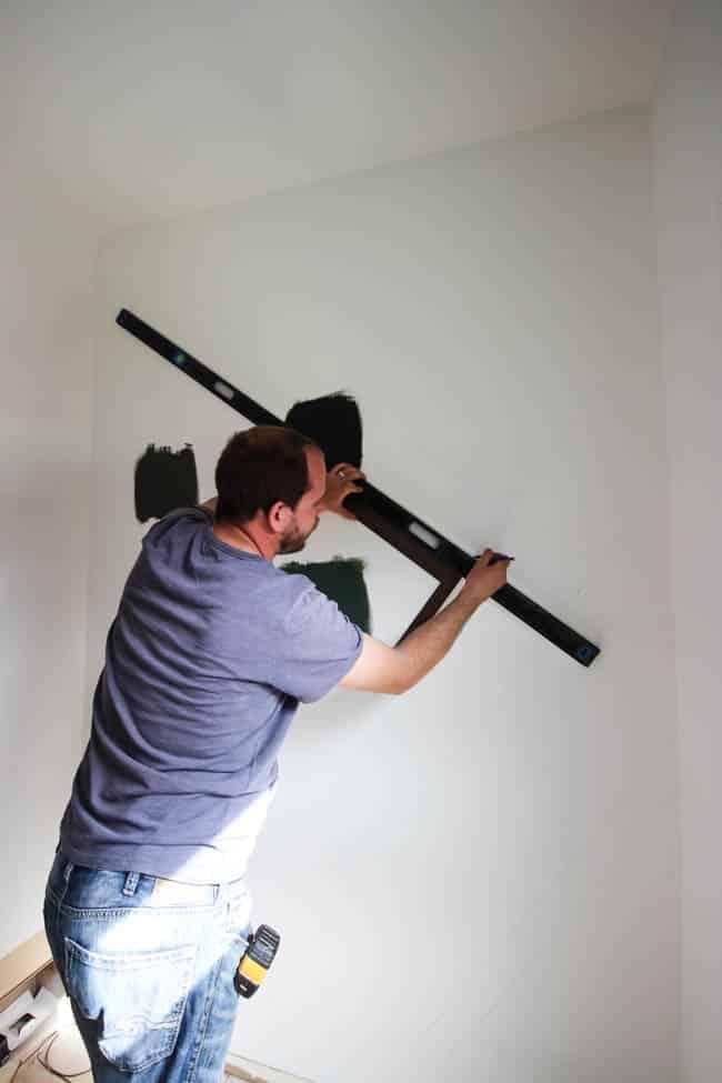 En este tutorial se acentúa una pared ya llamativa de por sí colocando unas molduras. Con el color negro ya captaba la atención, pero con el extra de las formas rectangulares gana en elegancia y presencia.Para este DIY lo primero que hay que hacer es medir bien la pared y el tamaño de las molduras dependiendo del diseño que elijamos. Con las medidas, cortar las piezas (listones de madera o de aluminio) que necesitemos para crear la forma elegida. Pintarlos y anclarlos a la pared siguiendo las mediciones. ¡El secreto está en el metro!