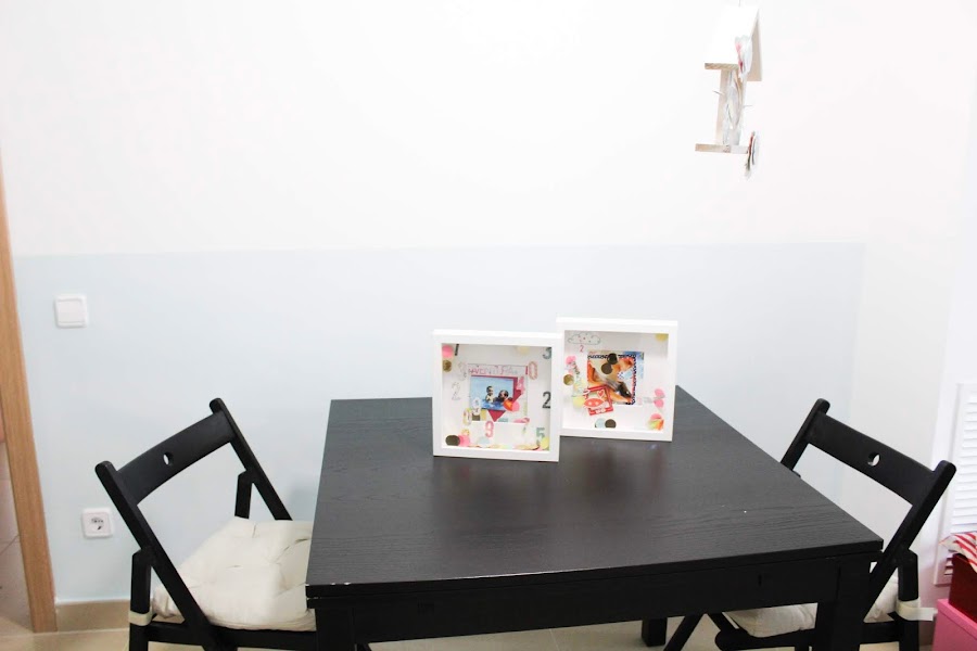 La segunda idea es pintar solo una parte de la pared, creando un efecto visual de continuidad, además es muy practico para los peques, porque podéis usar pintura que se puede limpiar con un paño húmedo y así lucir pared perfecta siempre.