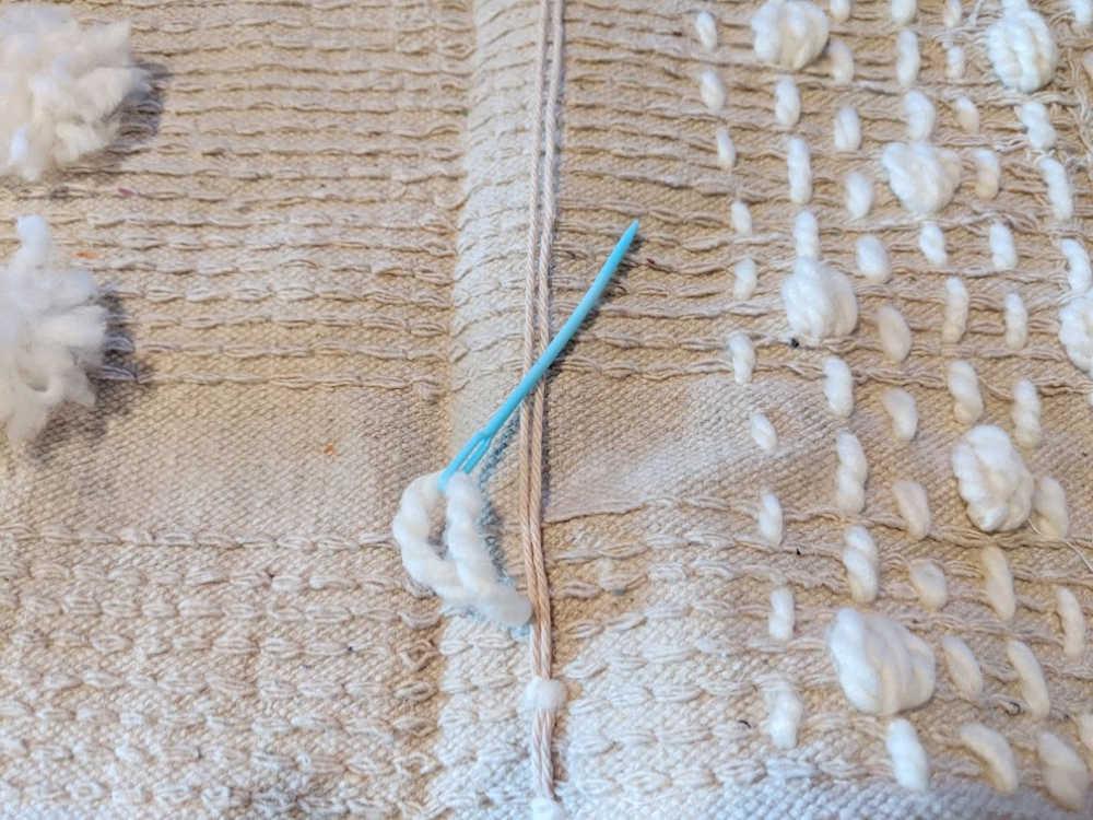 Si queremos hacerlo aún más fácil, podemos usar una funda de cojín sencilla y añadirle los detalles que queramos. De esta forma, nos ahorraríamos el último paso del tutorial (coser ambas alfombras o telas para meter el relleno del cojín entre ellas).