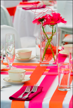 A veces, las ideas sencillas son las mejores y no hay que complicarse tanto la vida. Poniendo algunas florecillas naturales por aquí y por allá o en caso de no tenerlas, haciendolas de papel o bien con unas tiras de tela o lazos que vayan de lado a lado de la mesa, podremos cambiar el aspecto de un mantel normal y realizar una decoración de mesa colorida y original.