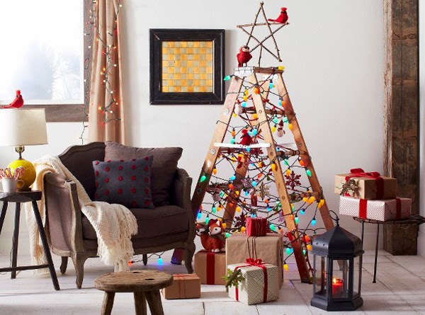 Si quieres ser original estas Navidades y huir de los clásicos abetos navideños, esta es una buena alternativa, una escalera de mano como árbol de Navidad. Puedes usarla durante las fiestas, poniéndole las luces, guirnaldas, bolas, estrellas......... y luego dejarla de nuevo en el trastero para su uso original, llegar a los espacios altos.