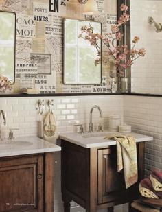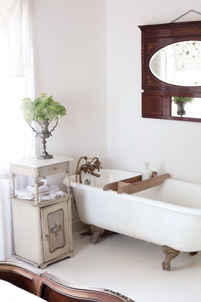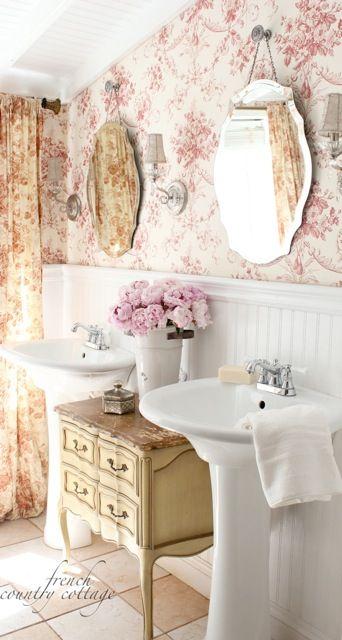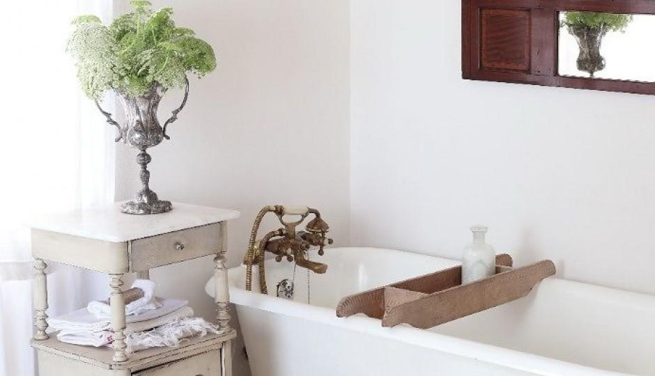 Una antigua mesita como la de esta foto u otra de estilo vintage queda super bien y da mucha personalidad . Puedes cambiarle el aspecto con un nuevo look para que se adapte decorativamente al baño.¿Que te parece la idea de introducir este mueble en el baño?.