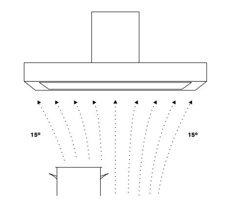 Los vapores de la cocción no se elevan verticalmente hacia arriba, sino que suben abriéndose en angulo de 15º a 17º y para que funcione correctamente, la campana debe ser un 10% más grande que el ancho de la placa de cocción. La altura a la que se instalará la campana también desempeñará un papel fundamental en la eficiencia de aspiración, y esta dependerá del modelo de campana que se decida, que a su vez, recomendará en la ficha técnica la atura adecuada. Para hacernos una idea, como ejemplo, las campanas de pared deben colocarse a una altura máxima de 70 cm y mínima de 60 cm desde la placa.