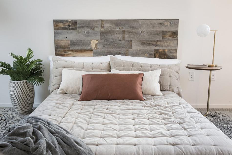 Fuente: Stikwood Una forma genial de decorar con lamas de madera es realizar un cabecero para tu cama, que aporte un toque rústico a tu dormitorio. No solamente quedará genial sino que puedes realizar tú mismo el trabajo. Solo has de cortar y pegar las lamas a una tabla que sirva de soporte, y que después colgarás en la pared. ¡Listo!
