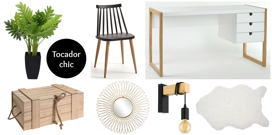- Gran espejo. Sin espejo no hay tocador. Es lo que le diferencia de un simple escritorio. Si quieres seguir las tendencias, apuesta por uno redondo. Están arrasando en las revistas de decoración.