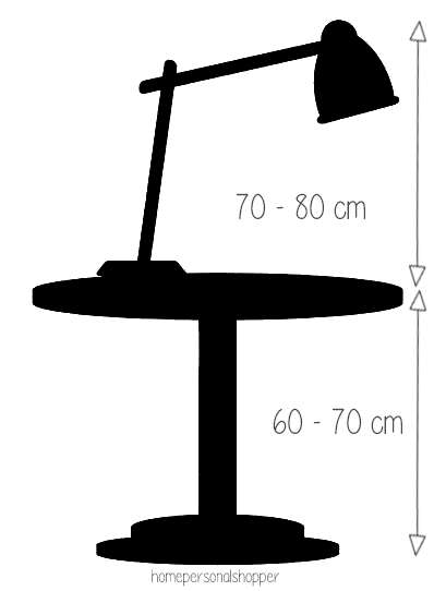 Para saber a que altura debe estar la lámpara en este caso, tenemos que tener en cuenta los tamaños de quien la acompaña: mesita de noche y cama, pero para haceros una idea, si la mesita mide entre 60-70 cm. de altura, un buen punto para colocar la luz (ya sea de pared, techo o sobre la mesita) está entre los 70-80 cm.