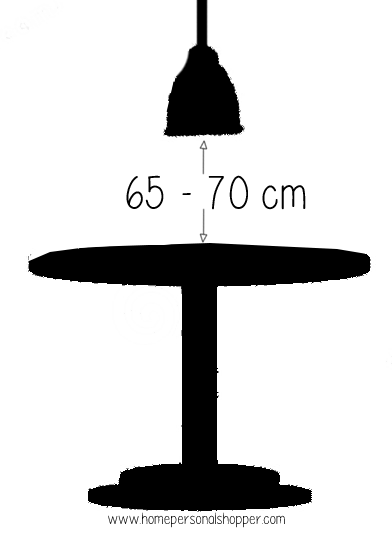 Debemos tener cuidado con la altura que pongamos la lámpara sobre la mesa, no debe corta la visión entre los comensales, una altura recomendable está entre los 65- 70 cm de la superficie de la mesa (antes de colgar nada comprueba que esta medida es adecuada ti y tus circustancias)