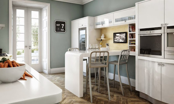 En un modelo clásico, también se puede prolongar la encimera para formar un pequeño espacio para desayunar.