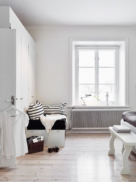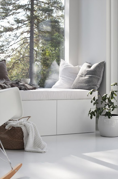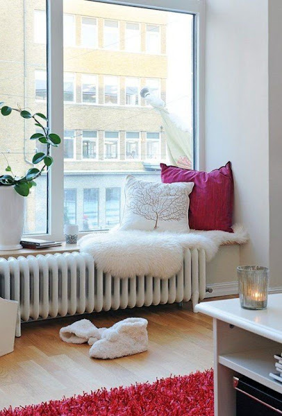 La verdad es que siempre me han gustado los bancos bajo las ventanas. Vamos que me hubiese colocado en casa de buen agrado un banco bajo cualquier ventana. Creo que es de lo más relanjante estar leyendo ahí, a la vez que aprovechas al máximo la luz natural que entra por tus ventanas.