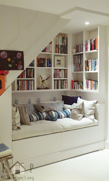 Si disfrutas en tu casa de un hueco bajo la escalera, y no tienes ocupado este hueco, una buena idea es que te montes allí tu bonito rincón de lectura. Sólo necesitarás ubicar una buena iluminación y un banco o sillón bonito.