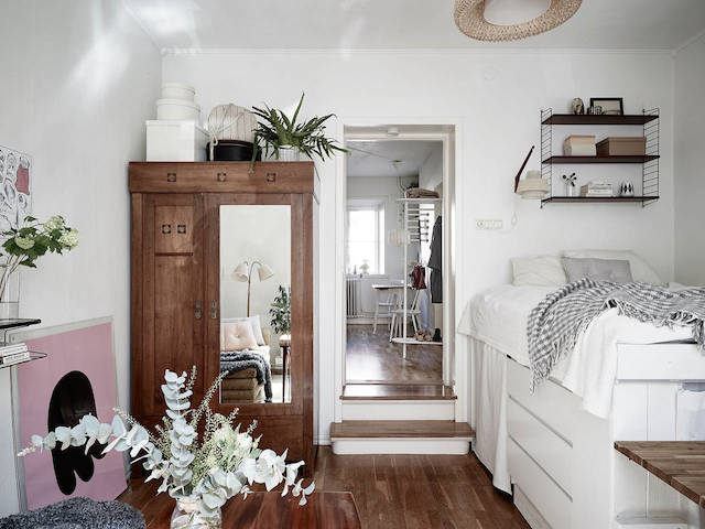 Hoy os traigo un minipiso de 32 m2 situado en Suecia en el que destaca sobre todo el buen aprovechamiento del espacio. Cama elevada con espacio de almacenaje en su inferior, percha en entrada, lavabo estrecho, estanterías en cocina y dormitorio, minicomedor...espero que os guste! Que tengáis buen día!