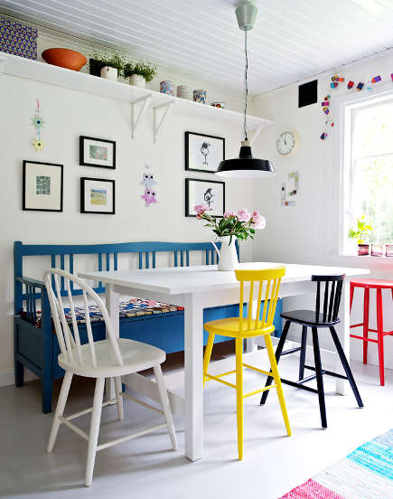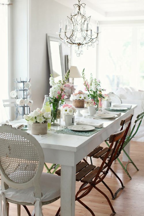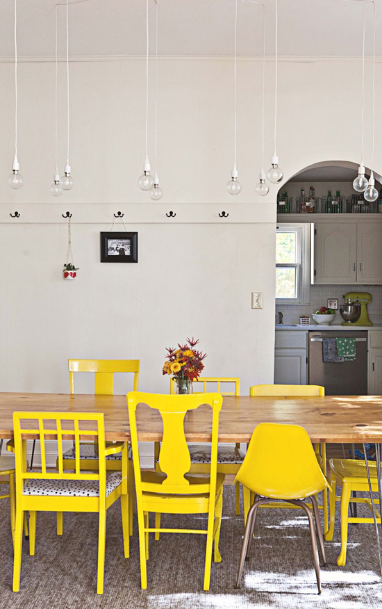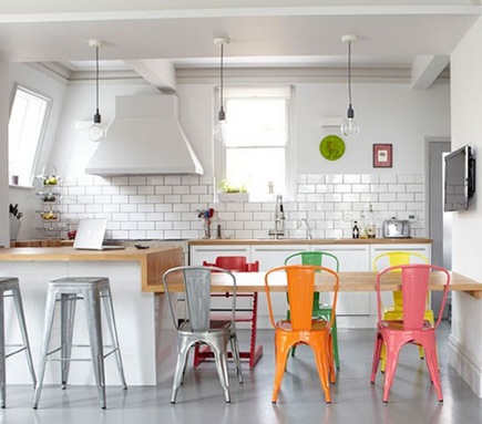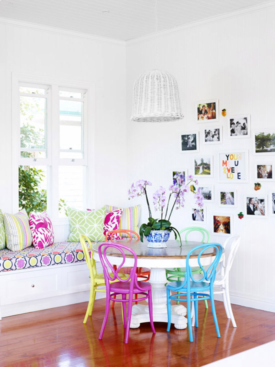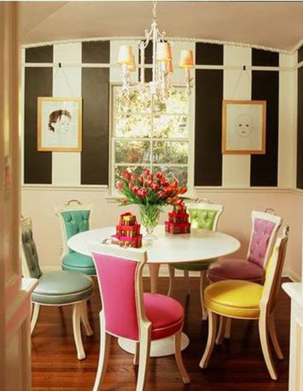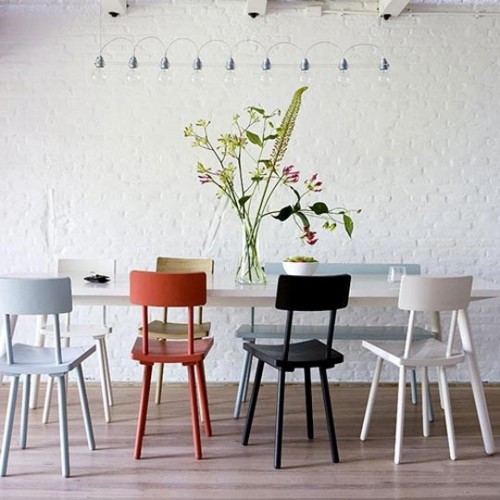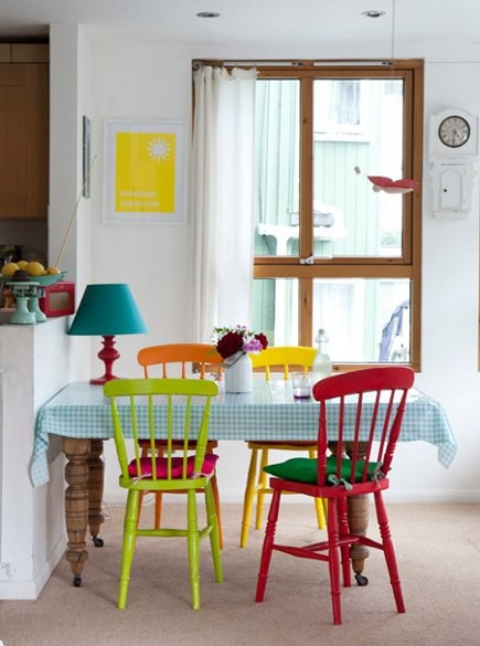o al contrario utilizar sillas del mismo estilo pero pintándolas de diferentes colores