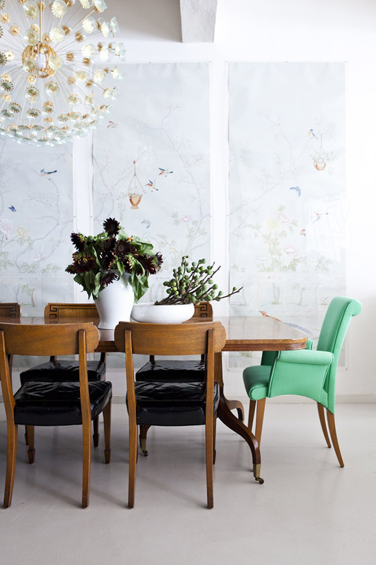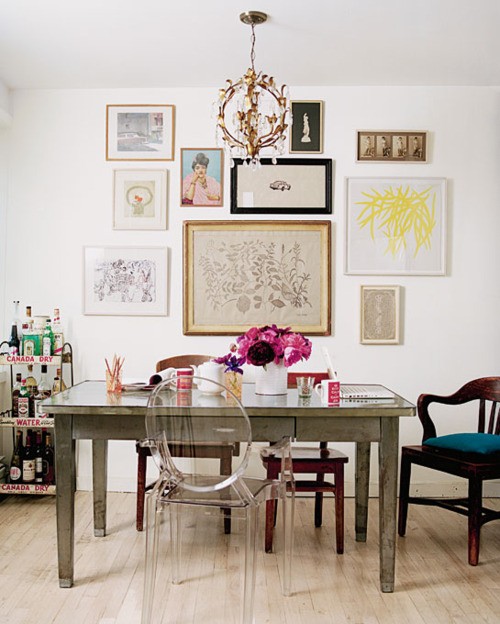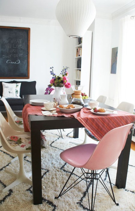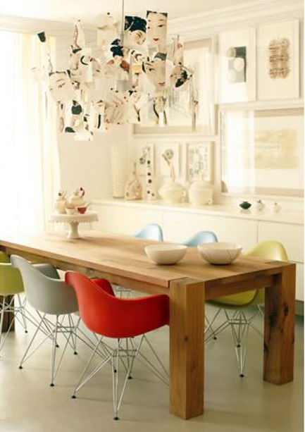 Siempre me ha parecido una idea de lo más decorativa y que se sale de los canones de lo establecido que está muy bien esto de poner todas las sillas iguales pero porqué no ir un paso más allá y combinar por ejemplo: