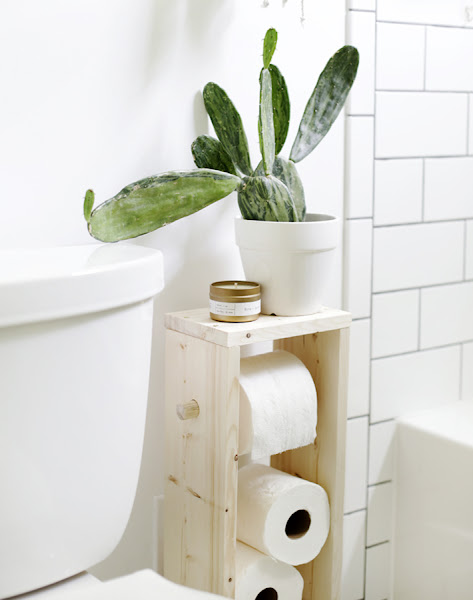 Este portarrollos de madera de The merry thought no solo sirve como portarrollos para el papel higienice que estamos usando, también para almacenar alguno más. Si lo fabricas con madera natural es perfecto para el estilo escandinavo. Pero si te inclinas más por el estilo rustico lo puedes crear con maderas más oscuras.