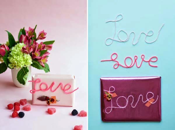Cortamos un trozo de hilo, un poco largo. En un bol ponemos pegamento. Ponemos el hilo en el pegamento y cuando esta empapado lo sacamos. En una base con papel de cera, hacemos la escritura que queremos regalar, en este caso es "Love is in the air". Vigilamos porque las manos se nos quedarán bastante sucias. Una vez tenemos la frase que queremos regalar, lo dejamos secar toda la noche. Al día siguiente cortamos los excesos de pega que nos hayan podido quedar y tendremos un original y divertido detalle. Que te parece?