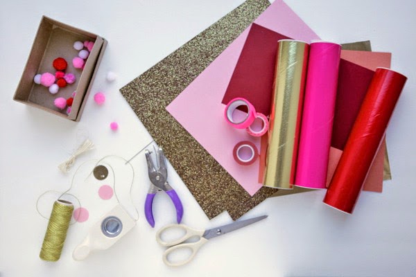 Papeles de colores en dorado, rosa y rojo