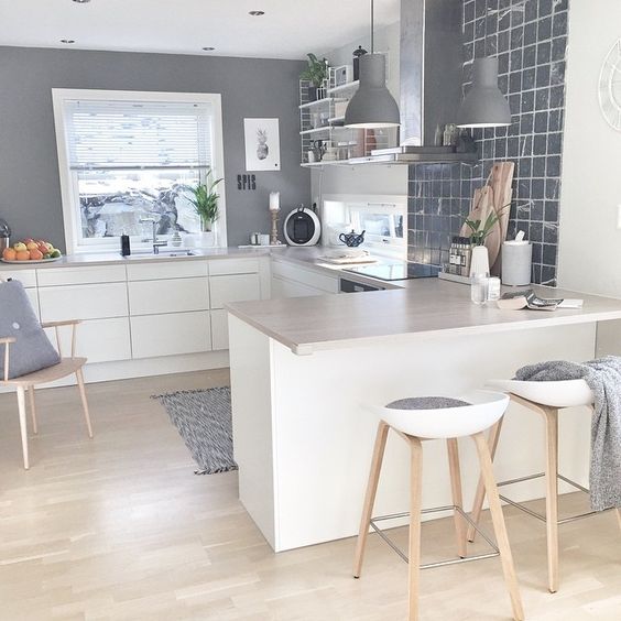 Como su propio nombre indica, la cocina en U consta de tres frentes unidos que forman una silueta similar a la de esta letra. Funciona muy bien para aprovechar bien el espacio y queda genial en cocinas grandes y cuadradas.