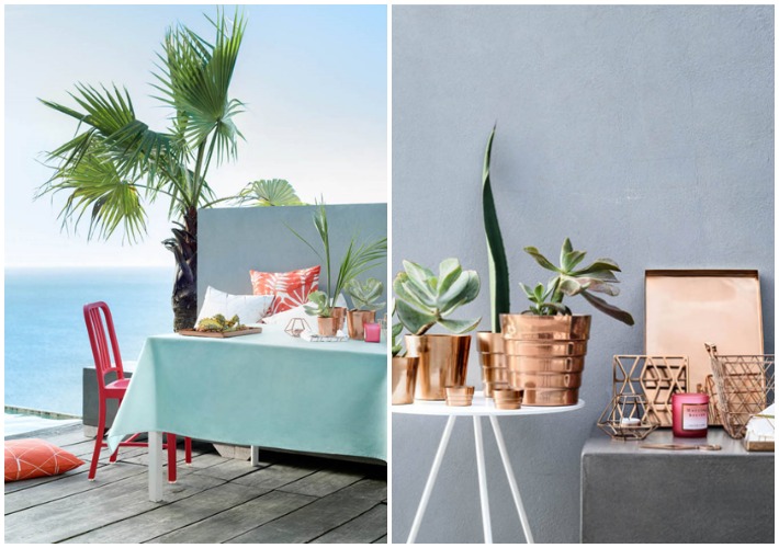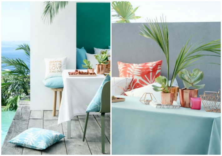 Otro de los clásicos del verano es la piscina. H&M nos propone un picnic combinando diferentes colores y materiales, el verde agua para los manteles salpicado con cojines de tonos salmón y velas rosas.....¿Bonito verdad? Incluyendo complementos decorativos en bronce el conjunto estético es uno de mis favoritos por diferente y refrescante.