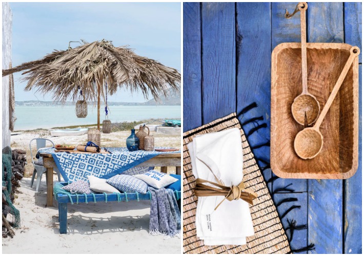 Sin lugar a dudas el verano para mí es sinónimo de playa, rayos de sol, arena blanca y mar. Como no podía ser de otra manera uno de los lugares que H&M nos propone para ir de picnic es la playa y el color, el azul. Manteles y cojines en algodón con aire Mediterráneo, damajuanas o farolillos creados con tiras de algas secas son algunas de los complementos que podremos encontrar.