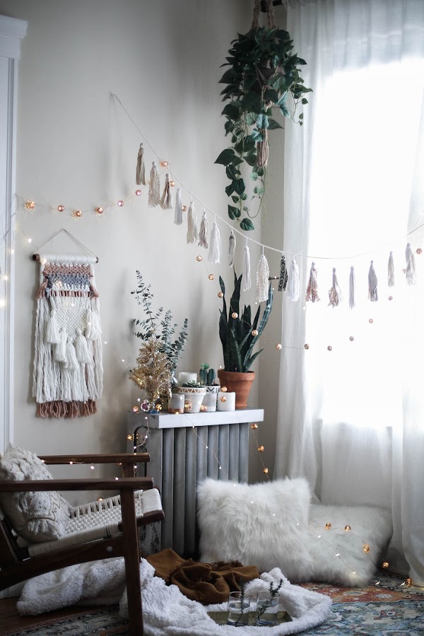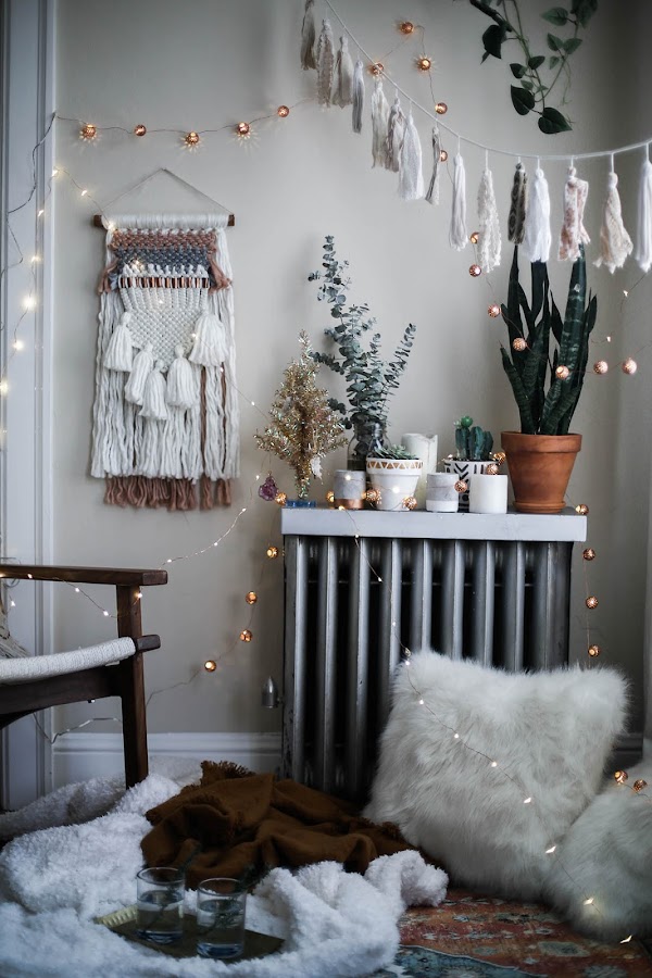 Una pequeña guirnalda. Es la mejor manera para añadir un pequeño toque festivo. No es necesario que incluyan motivos navideños, de hecho, pasadas estas fechas podrás seguir utilizándolas para decorar otros rincones.
