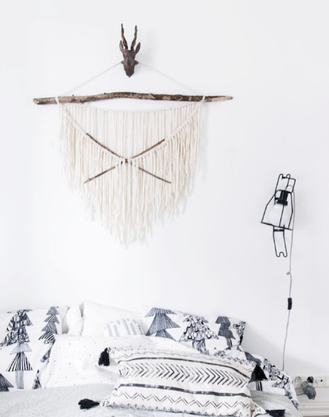 Pero quizás la decoración con macramé alcanza su esplendor en las grandes obras de arte textil que adornan las paredes. Sobre todo los cabeceros de los dormitorios. Si os gustaría decorar el cabecero de tu dormitorio con macramé no os podéis perder esta idea del blog No home without you para crear uno con inspiración azteca