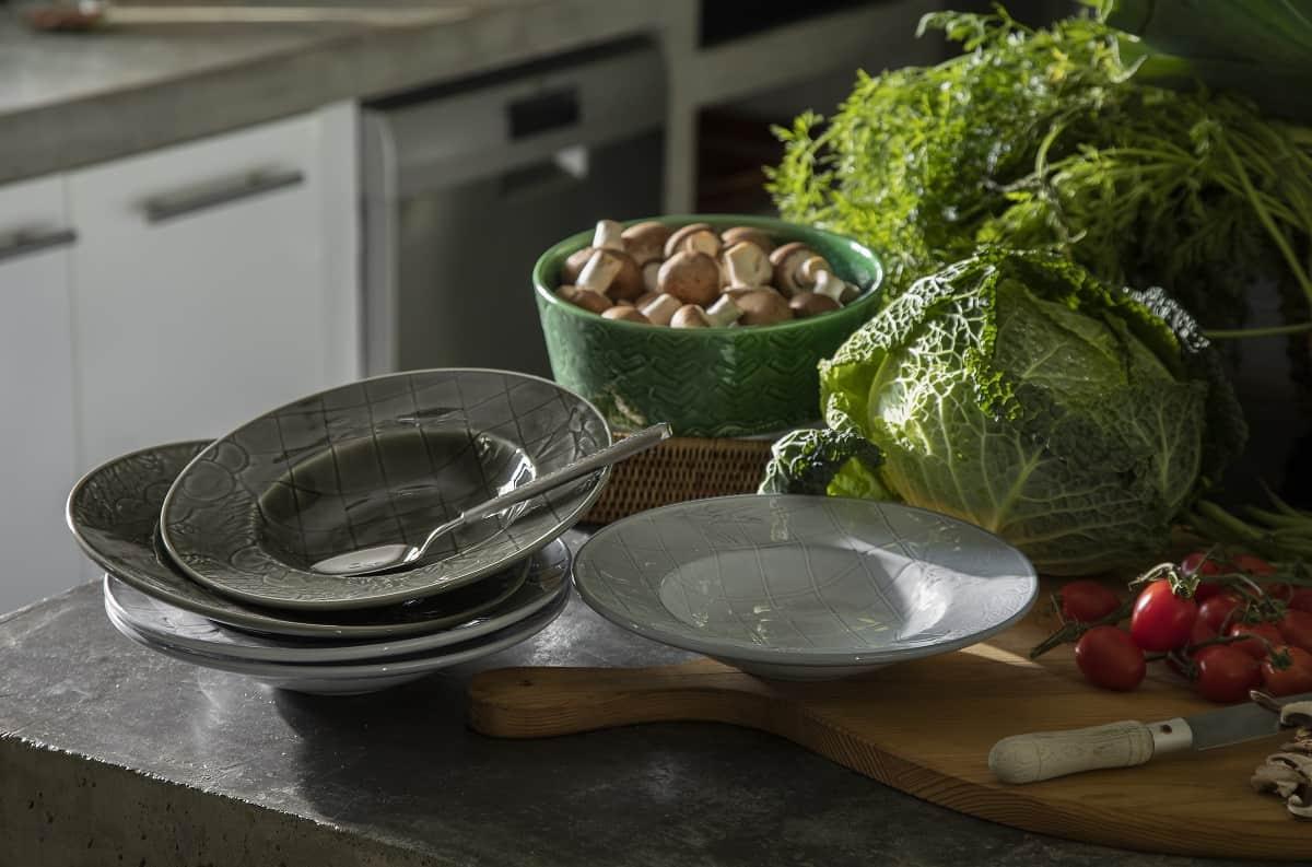 La línea Parodia de Bordallo Pinheiro se caracteriza por su enfoque contemporáneo, relajado y humorístico perfecto para las primeras mesas del otoño. Todas las piezas son diferentes y tienen una composición que resulta de un mosaico de motivos naturalistas siempre asociados con gráficos inusuales de estudios anteriores. Es una de las vajillas más versátiles y atemporales y encaja a la perfección en las mesas otoñales y con tonos marrones, verdes o grisáceos