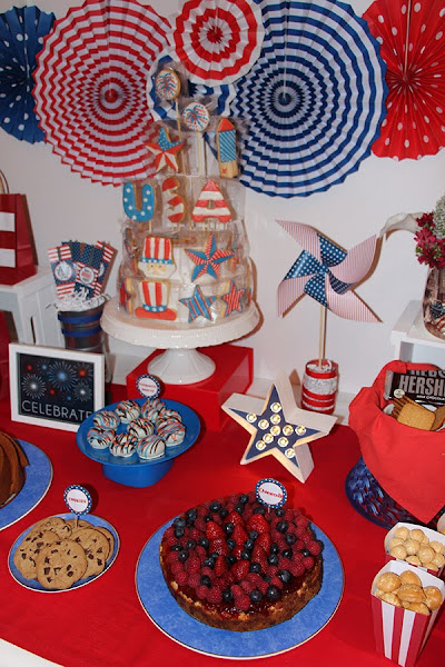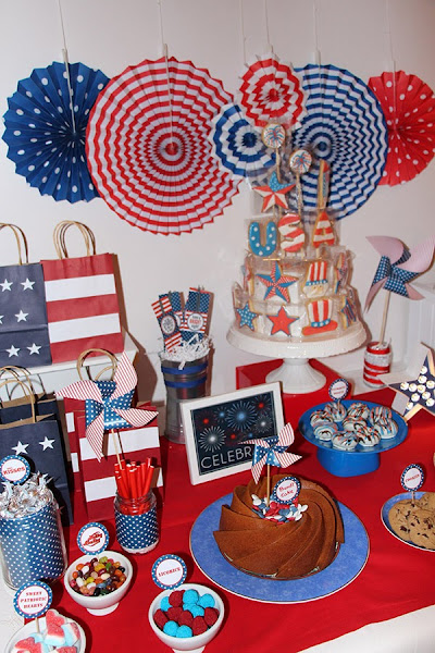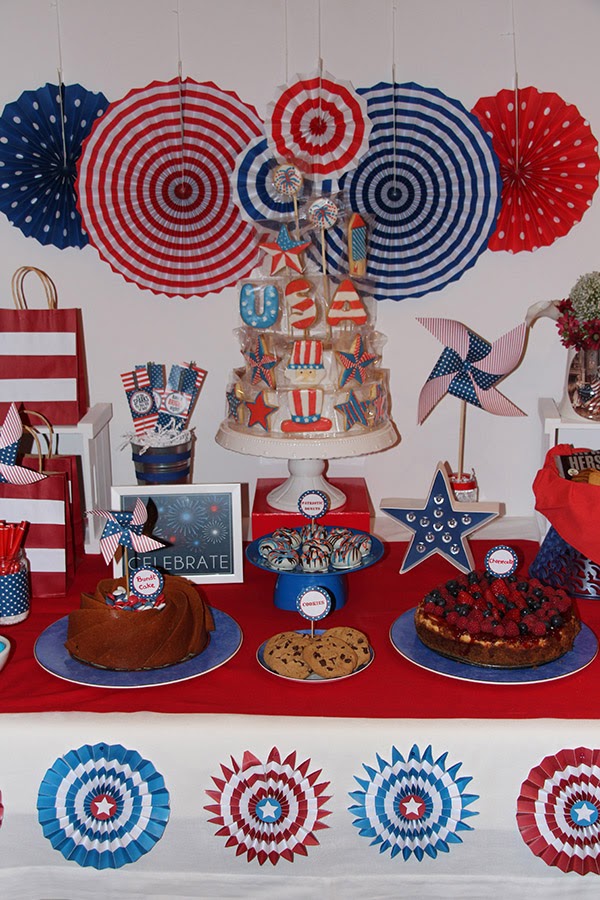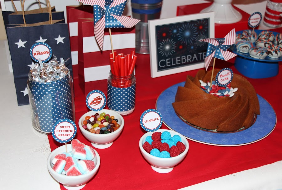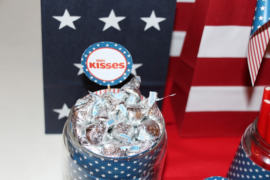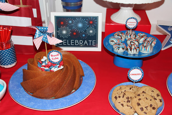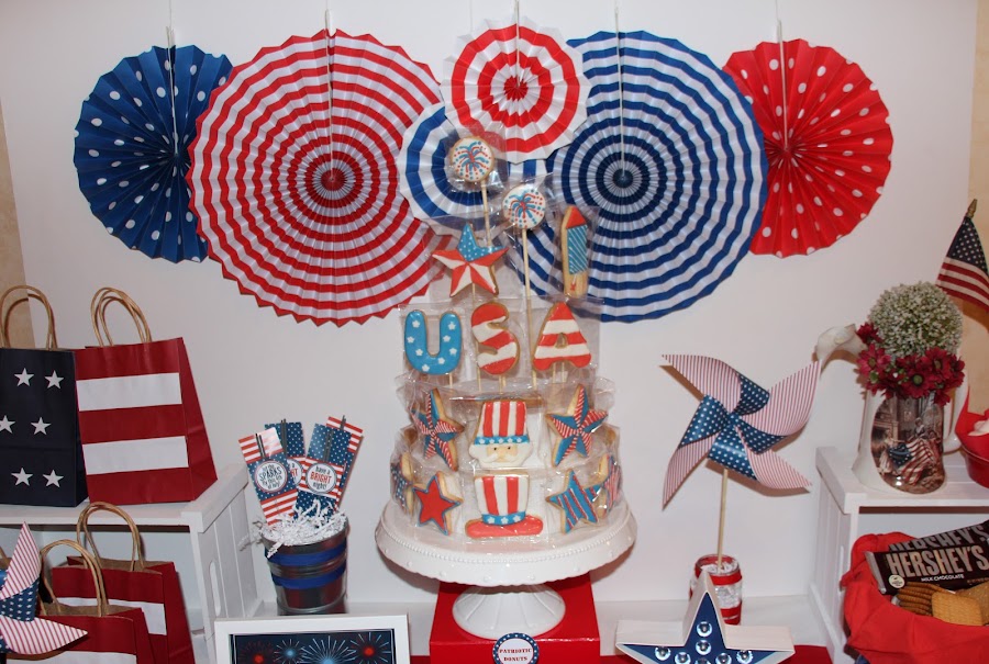 Todo los toppers y molinillos de papel estaban decorados con barras y estrellas, con los colores de la bandera americana.
