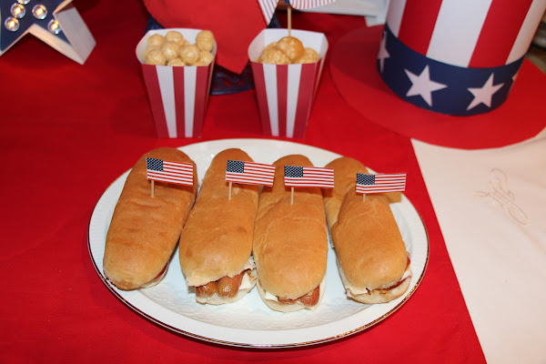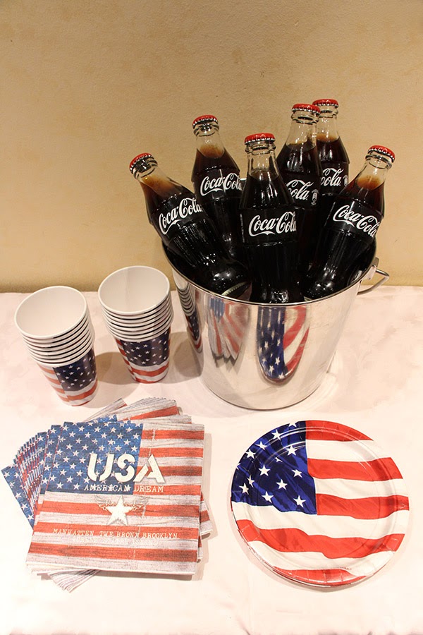 ¿Os habéis fijado que en cualquier película norteamerciana aparece la bandera americana? Fijaros, porque aunque sea en un pequeño rinconcito, siempre aparece. Así que en nuestra mesa tenía que estar presente, tenía que ser una fiesta como los que montan los americanos el 4 de julio, patriota al máximo.