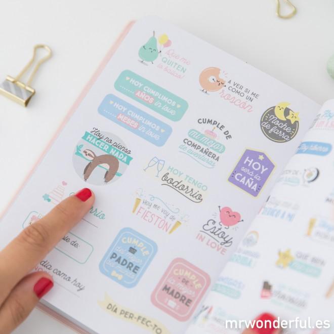 Me encanta su tamaño, ideal para llevar en el bolso, y lo mejor es que por dentro está bién completa! con listas, notas, stickers, frases molonas… todo eso a lo que Mr Wonderful nos tiene tan bien acostumbrados
