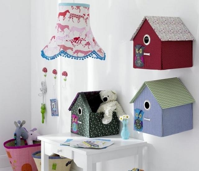 Las casitas de pájaros también se han convertido, en los últimos años, en apuestas sólidas para la decoración de espacios interiores en el hogar. Se trata de alternativas para la habitación o un taller, y se complementan de manera excelente si hacemos un dibujo de un árbol y vamos colocando en las ramas pintadas una casita.