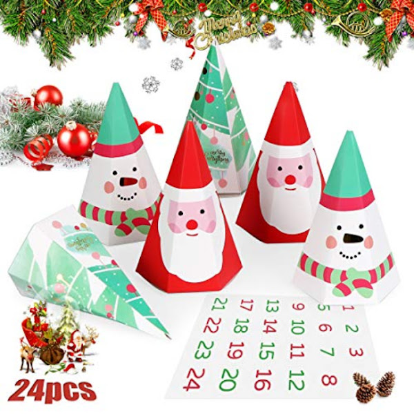 Zaloife Cajas de Regalo Navidad Calendario de Adviento, 24 Cajas de Calendario con 24 Pegatinas Adhesivos Digitales de Adviento, para Navidad, Fiesta, Decoración de Regalos