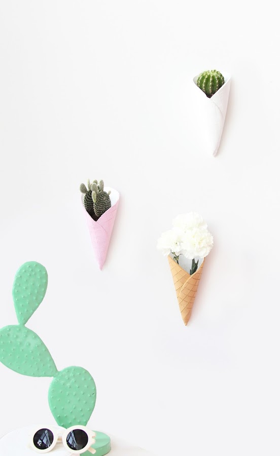 Estos DIY no los he hecho yo, lo he encantado en distintos blogs y para que no se haga tan interminable esta publicación como un verano sin playa, os voy a poner también los enlaces para que podáis ver paso a paso como se hacen. De todos ellos me quedo especialmente con dos de ellos, y son precisamente el primero y el último de ellos. El primero, el "globo de verano", me gusta por lo sencillo y gracioso que es. Esta muy chulo para hacer varios de ellos con distintas figuras y tener un rinconcito de la casa decorado solamente para esta estación. Y el otro, los cucuruchos, me parecen geniales. Es mas creo que podrían valer para todo el año. Le dan un toque muy fresco y original a la decoración, pero hay que tener cuidado porque cada vez que los veamos se nos apetecerá un helado y eso puede ser muy malo para nuestra dieta jaja.