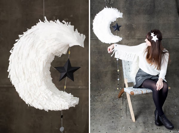 Por último Decora y diviértete nos trae una luna hecha con cartón y papel de seda cubierta de flecos con un toque muy naif que nos ha encantado.