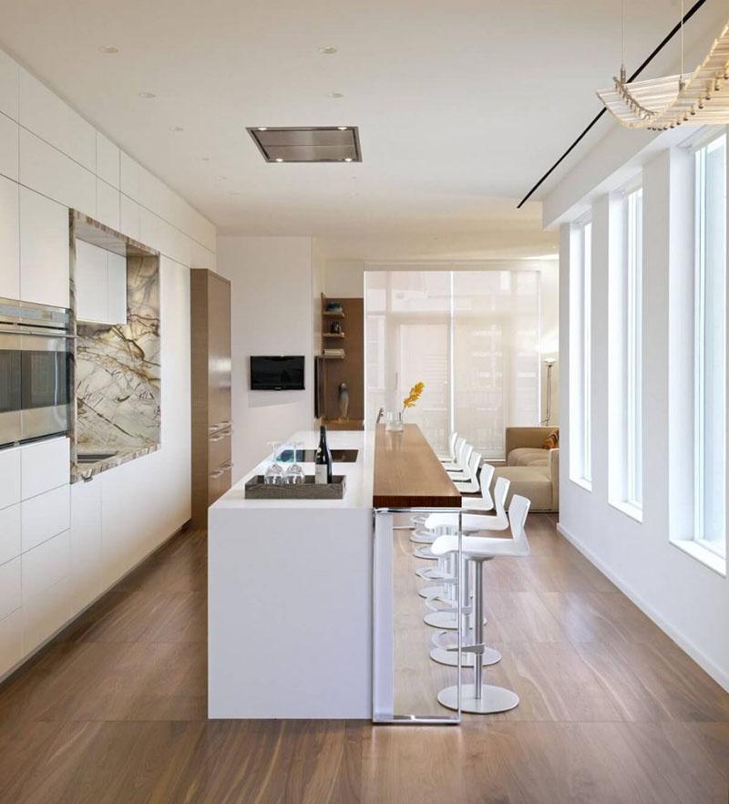 Sin embargo, las cocinas pequeñas y recoletas también se benefician de esta pieza auxiliar que hasta hace relativamente poco tiempo formaba parte casi exclusivamente de los bares. Si no tienes mucho espacio en la cocina, pero quieres habilitar una zona para comer, alargar un poco la encimera puede ser la solución. Los taburetes altos se hacen, en ese caso, imprescindibles.