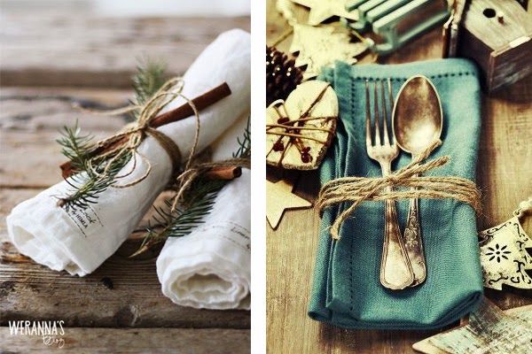 No hace falta comprar servilleteros, con unas simples cuerdas o casas que tengamos por casa podemos decorar las servilletas de una manera muy especial.