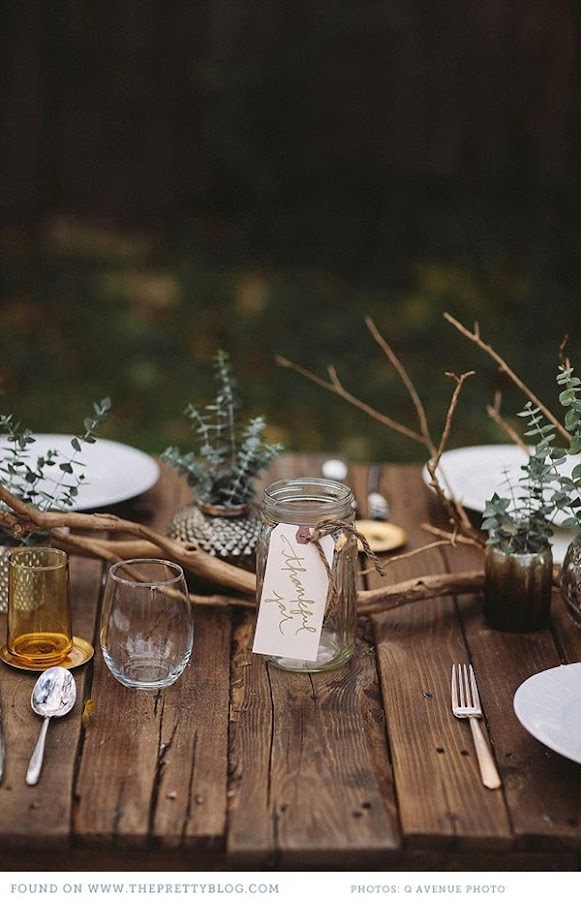 Aprovechemos lo que nos regala la naturaleza. Centros de mesa naturales, con ramas o tronquitos, hojas o piñas que hayamos encontrado.