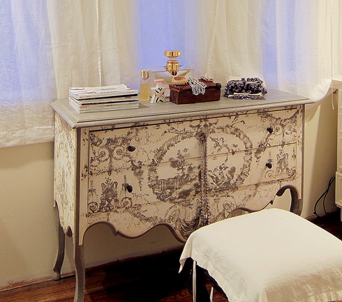Si quieres ver un tutorial de la última transformación para que puedas inspirarte y hacer tu propio tuneo,aquí tienes esta cómoda de estilo Luis XV en blanco y azul con técnica de decapado.