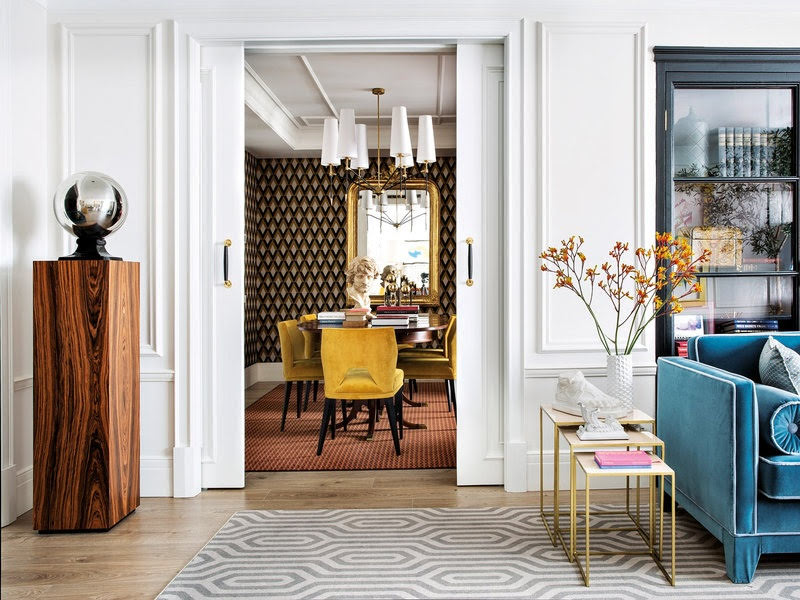 Uno de los tips que más le gusta poner en práctica a esta gran interiorista son las paredes decoradas, ya sean con molduras, filigranas de mil formas que harán de una pared aburrida una con un dinamismo absoluto. En el suelo también se puede usar esta tendencia en forma de mosaicos en el pavimento e incluso en el estampado de las alfombras.